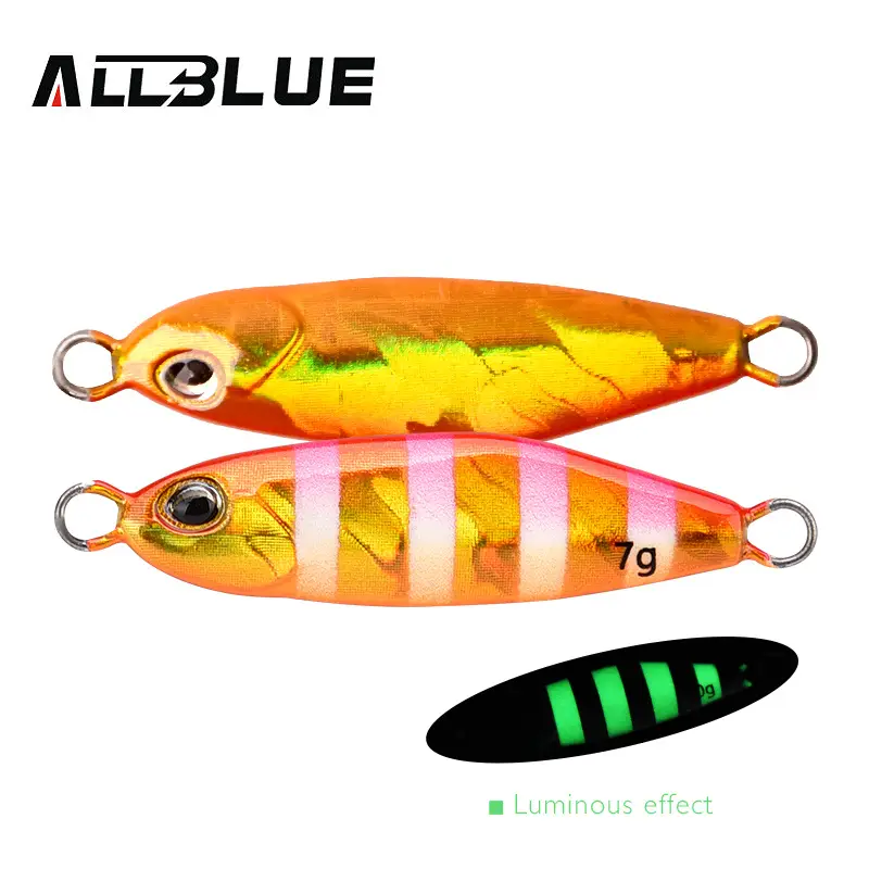 ג'יג סלואו AllBlue במשקל 3 גרם ואורך 26 מ"מ לדיג ז'רז'ור. פעולת נפילה איטית ומתנדנדת לדגי ים טורפים בחופי ישראל.